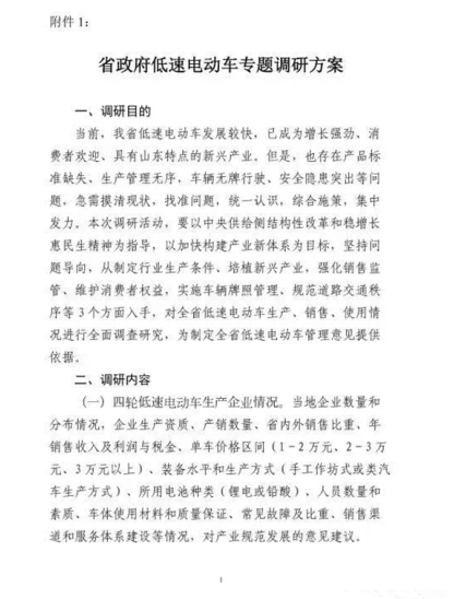 山東省政府發(fā)文 對低速電動車企業(yè)展開全面調(diào)查