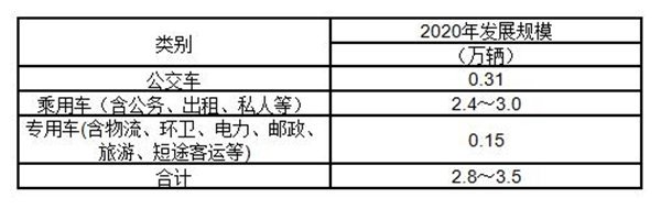 表3.1-1 至2020年各分類電動(dòng)汽車發(fā)展規(guī)模