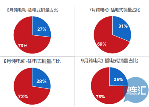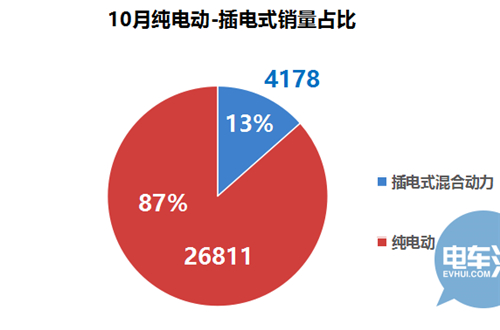 6月插電式混合動(dòng)力車(chē)型銷(xiāo)量達(dá)到今年高9139臺(tái),占到當(dāng)月銷(xiāo)量的27%。但之后幾月銷(xiāo)量一直呈下降趨勢(shì),從7月31%占比到8月28%,10月插電式混合動(dòng)力車(chē)型銷(xiāo)量?jī)H為13%,占比不斷下降為年度低。