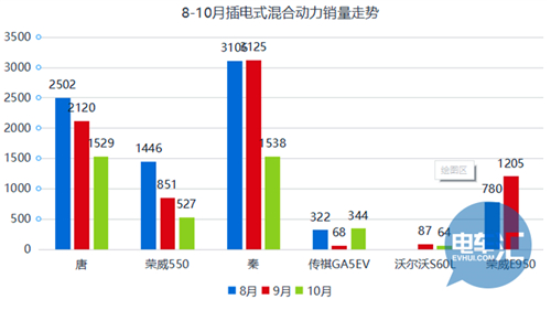 近幾月主打插電式混動(dòng)車(chē)型銷(xiāo)量慘淡,比亞迪唐、榮威e550持續(xù)下降明顯,比亞迪秦10月銷(xiāo)量較上月折半,由3125臺(tái)降低到1538臺(tái),降幅20.8%。
