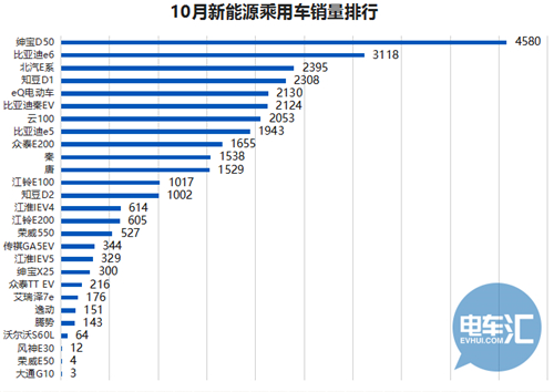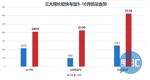 比亞迪e6、云100、eQ電動(dòng)車(chē)三大車(chē)型銷(xiāo)量增速很大。眾泰E200本月銷(xiāo)量1655臺(tái),上月僅僅326臺(tái),而7月1603臺(tái)、8月1547臺(tái),算是重新步入“正軌”。紳寶系列經(jīng)歷了9月超過(guò)的增幅,10月同樣有20.5%的增幅,達(dá)到了4580臺(tái),有著不錯(cuò)的增速和勢(shì)頭。