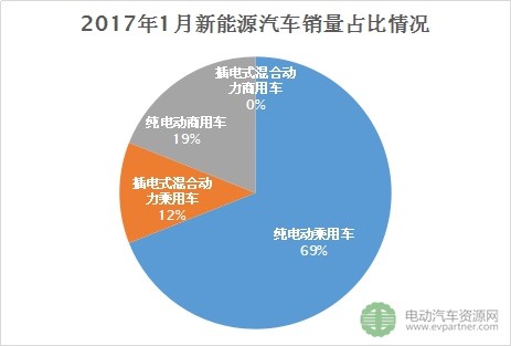 2017年1月新能源汽車銷售占比情況,新能源商用車僅占19%