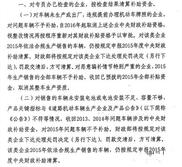 其實(shí),該份通知并非四部委對(duì)新能源汽車(chē)補(bǔ)貼清算再起波瀾,而是對(duì)2016年涉及“車(chē)輛閑置”問(wèn)題的車(chē)輛進(jìn)行再次確認(rèn)。2016年9月,四部委向各省市工信部及發(fā)改委下發(fā)了《關(guān)于2015年度新能源汽車(chē)推廣應(yīng)用補(bǔ)助資金清算工作的補(bǔ)充通知》,文中表示, “近期,財(cái)政部駐各地財(cái)政監(jiān)察專(zhuān)員辦事處對(duì)2013-2015年新能源汽車(chē)推廣應(yīng)用補(bǔ)助資金管理使用情況進(jìn)行了專(zhuān)項(xiàng)檢查,并對(duì)以下四種情況進(jìn)行處理: