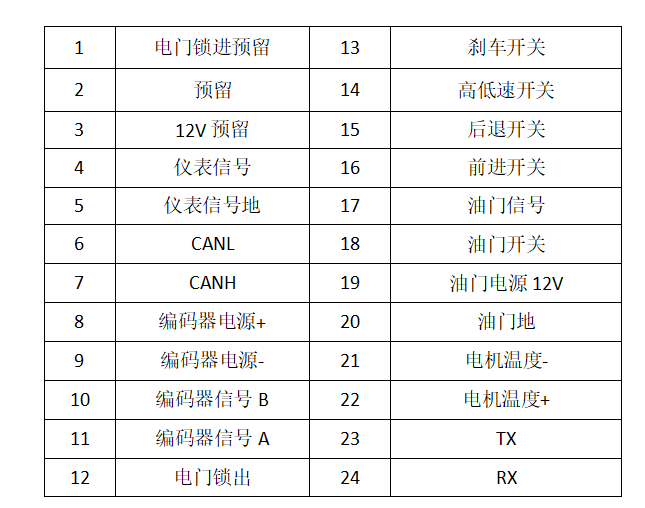 電機(jī)控制器接口定義